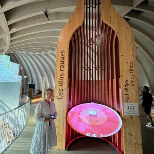 Wir entscheiden uns Bordeaux mit dem Zug zu besuchen, die Bahnstation La Hume ist nur 600 m vom Campingplatz entfernt und wir fahren in 50 Minuten völlig stressfrei ins Zentrum. Als erstes besuchen wir das Cité du Vin, das ob seiner Architektur sehenswert ist. Auch die Ausstellung über das 110.000 ha große Weinbaugebiet Bordeaux ist sehr informativ, eine Weinkostprobe im 8. Stock mit Blick über die Stadt ist inclusive.